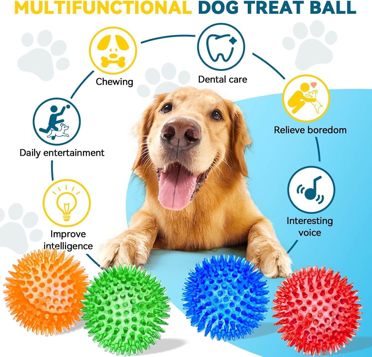 3” Squeaky Balls for Small Dogs, 4 Colors Spiky Dog Balls for Puppy Teething, Durable Puppy Chew Toys for Teething, Indestructible Toys to Fetch and Train, BPA Free Non-Toxic
