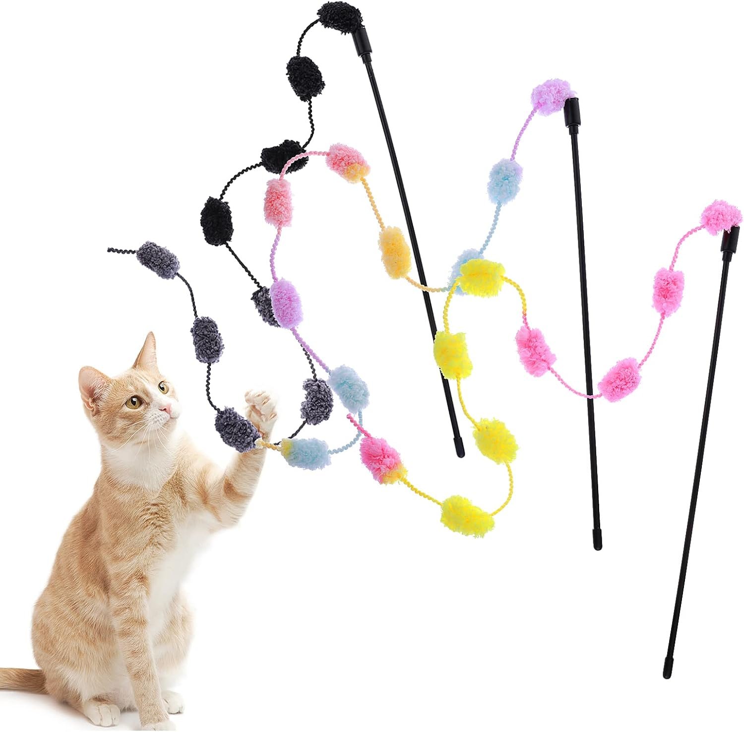 - Furry Plush Ball Design: Our interactive rainbow cat string toys adopt the plush ball design, colorful plush balls are easy to arouse the cat’s interest. Also, the plush ball is made of durable material which is bite resistant, sturdy and you do not have to worry about changing the cat wand frequently.
