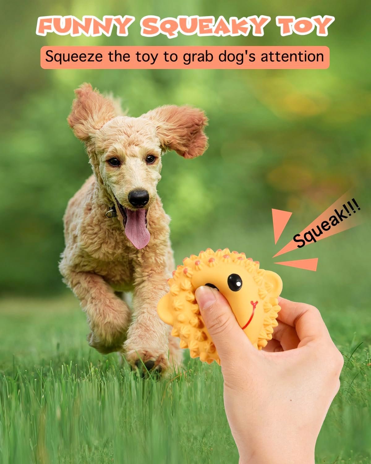 - Funny Squeaky Toy: The soft latex toy with built-in squeaker makes a squeaky sound when dogs squeeze it. It attracts dogs’ attention and make them more excited during playtime, great for reducing boredom and mental stimulation.